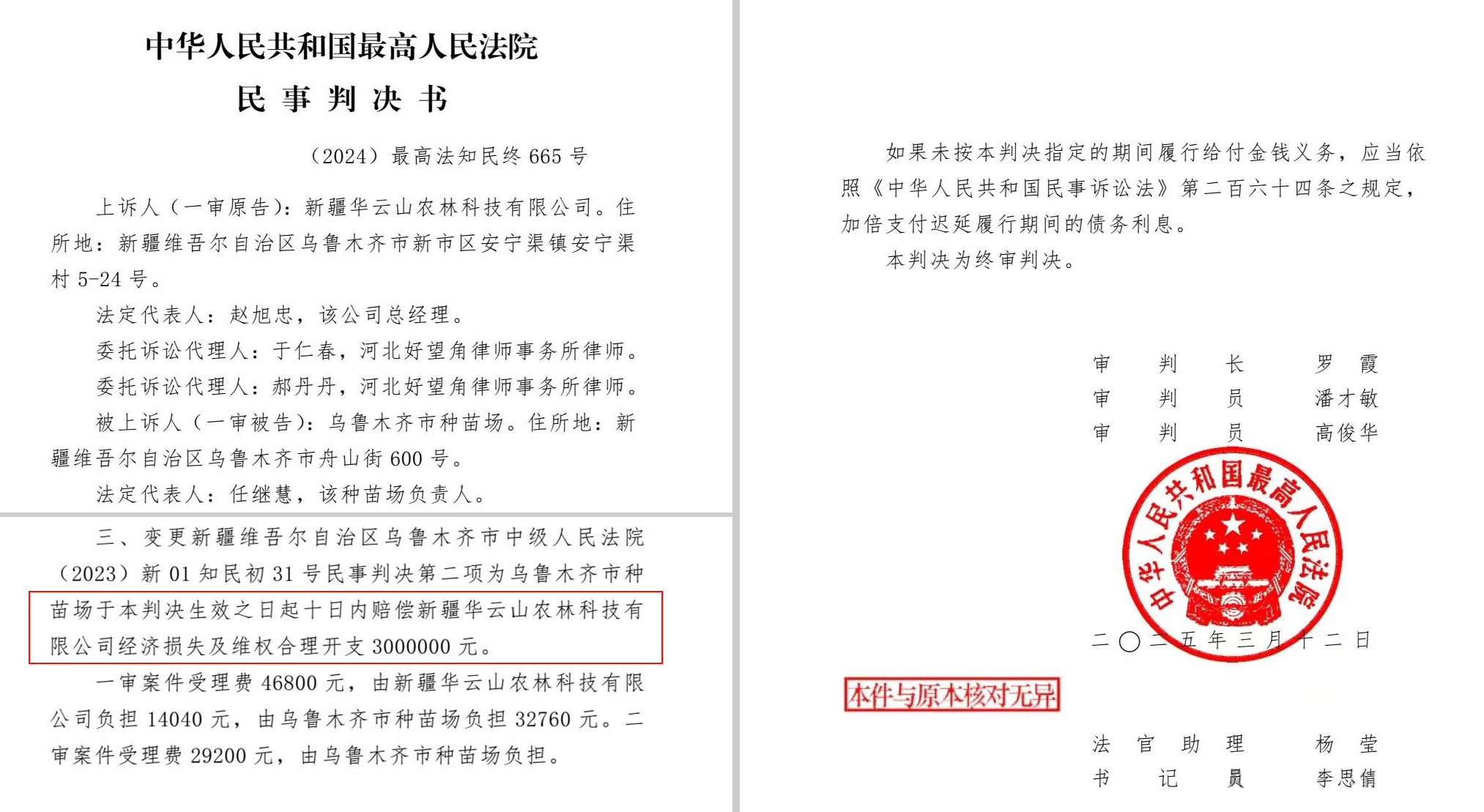 初审判赔20万 终审判赔300万!天山祥云维权案完胜,让育种人看到了希望→