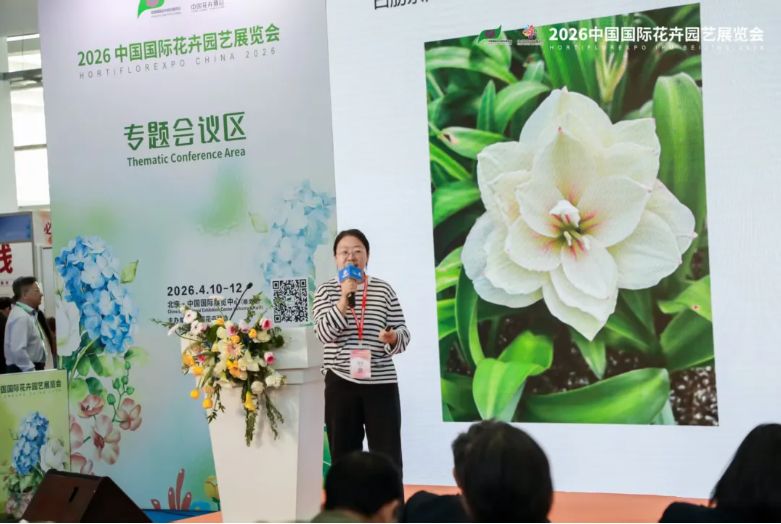 悠暖园艺代表戚幼囡女士分享了她在朱顶红育种领域的坚守与突破,目前已培育出多个商品化新品种,其中朱顶红‘血脉’等已获得植物新品种权证书。她的分享为与会者带来了朱顶红自主育种实践的宝贵经验。