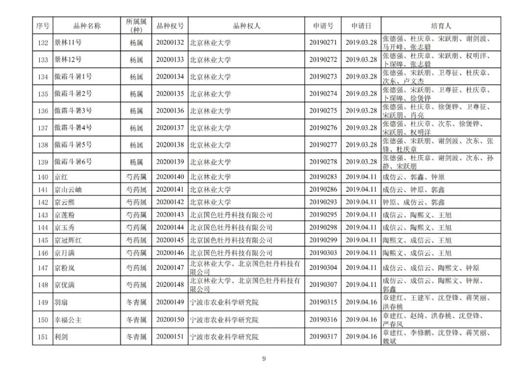 国家林业和草原局2020年第一批授予植物新品种权名单公示啦!