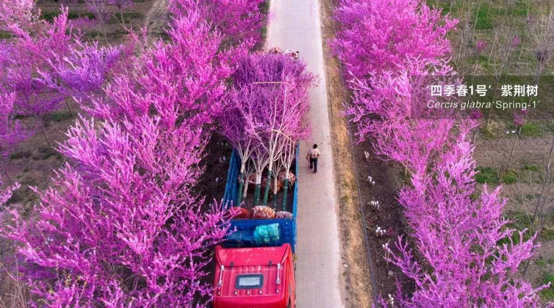 ‘四季春1号’紫荆树2014年取得《植物新品种权证书》,种苗仅限加盟商有序生产,工程苗特供园林终端工程。实行联盟化管理,全国统一定价,明码标价。产品市场表现优异,销售火爆。成为公认的“网红树种”,被评为“最具商业价值的苗木品种”。