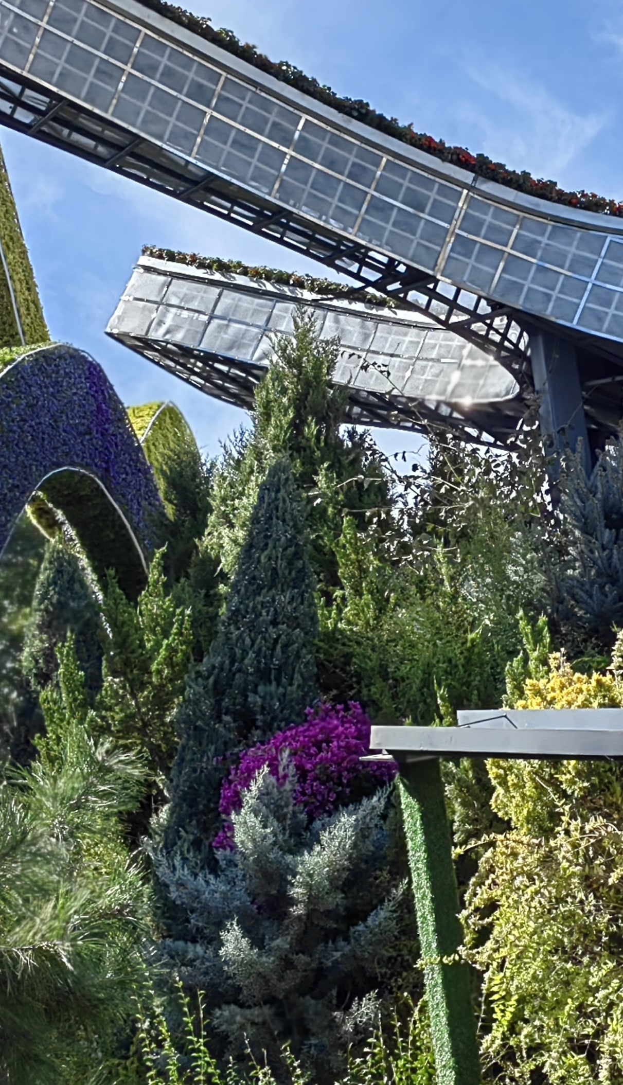 其中,叶色偏蓝的彩叶针叶树种‘蒙林兰柏’、紫红色叶片‘冰川红叶’首次亮相“协调发展”花坛,为其增色添彩。