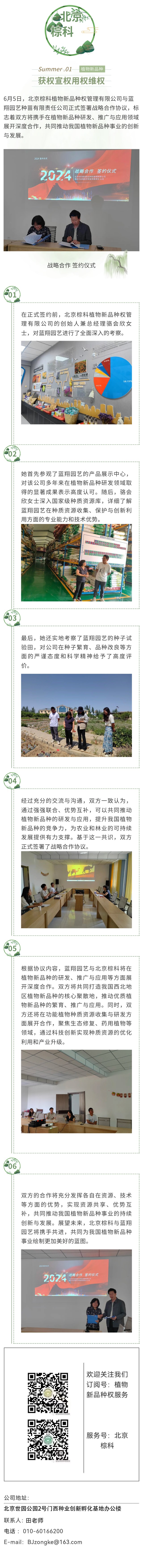 :6月5日,北京棕科植物新品种权管理有限公司与蓝翔园艺种苗有限责任公司正式签署战略合作协议,标志着双方将携手在植物新品种研发、推广与应用领域展开深度合作,共同推动我国植物新品种事业的创新与发展。