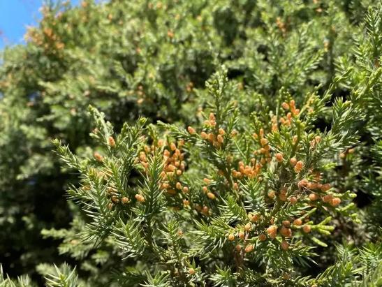 圆柏花粉致敏的根源在于其风媒传粉特性:雄株释放的花粉质轻量多,随风扩散效率极高。加之全球气候变暖延长授粉期,城市硬化地面加剧花粉悬浮,污染颗粒增强花粉致敏性,多重因素叠加导致过敏问题愈发严峻。