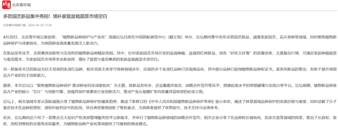 报道标题: 《植物新品种 “3 年烂大街 ” 的魔咒怎么破?这场论坛给出了答案》