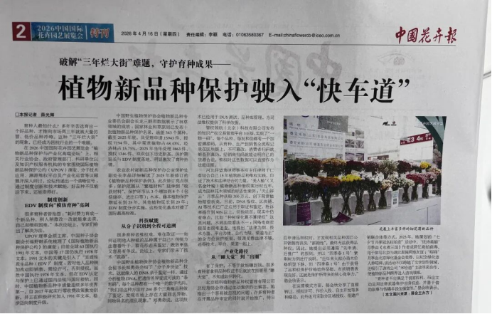 报道标题: 《如何让品种生金,答案就在植物新品种保护与产业化论坛 | 2026 中国国际花展》
