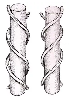 左旋↑(日本紫藤左旋) 右旋↑(中国紫藤右旋)