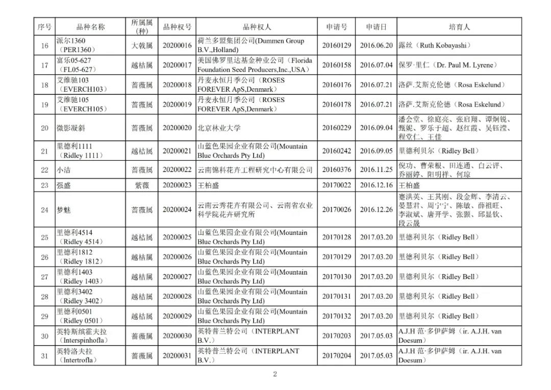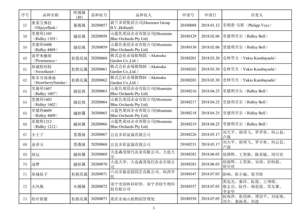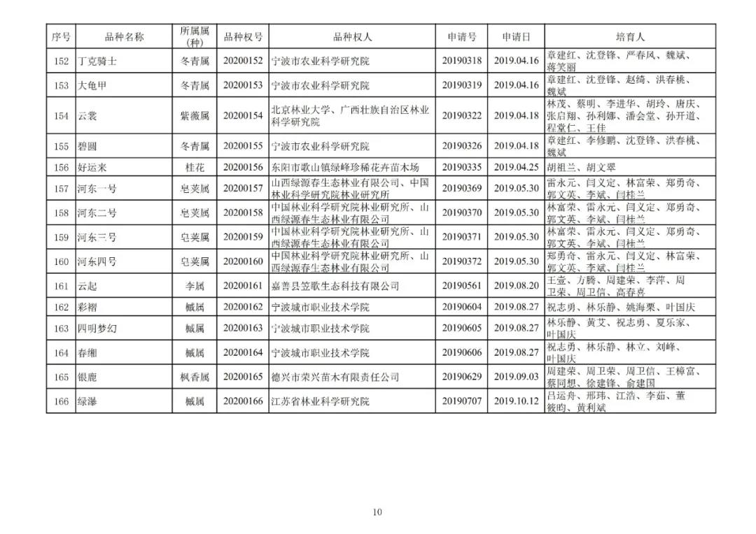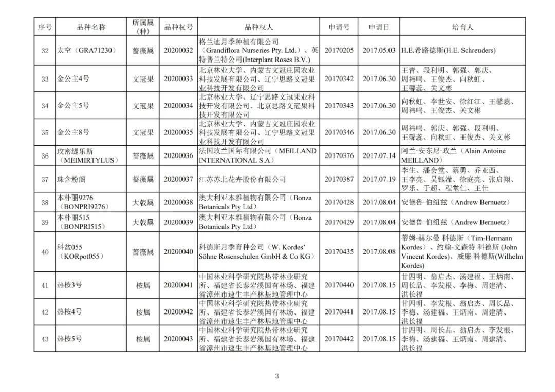(附件:国家林业和草原局2020年第一批授予植物新品种权名单)