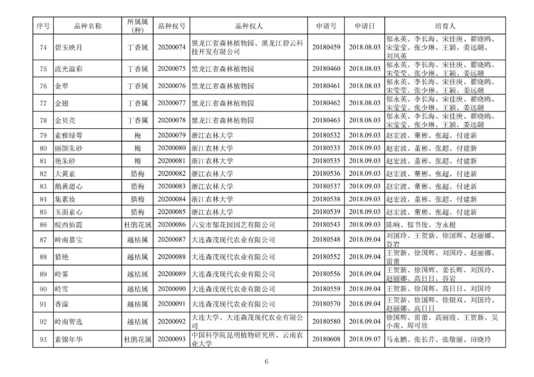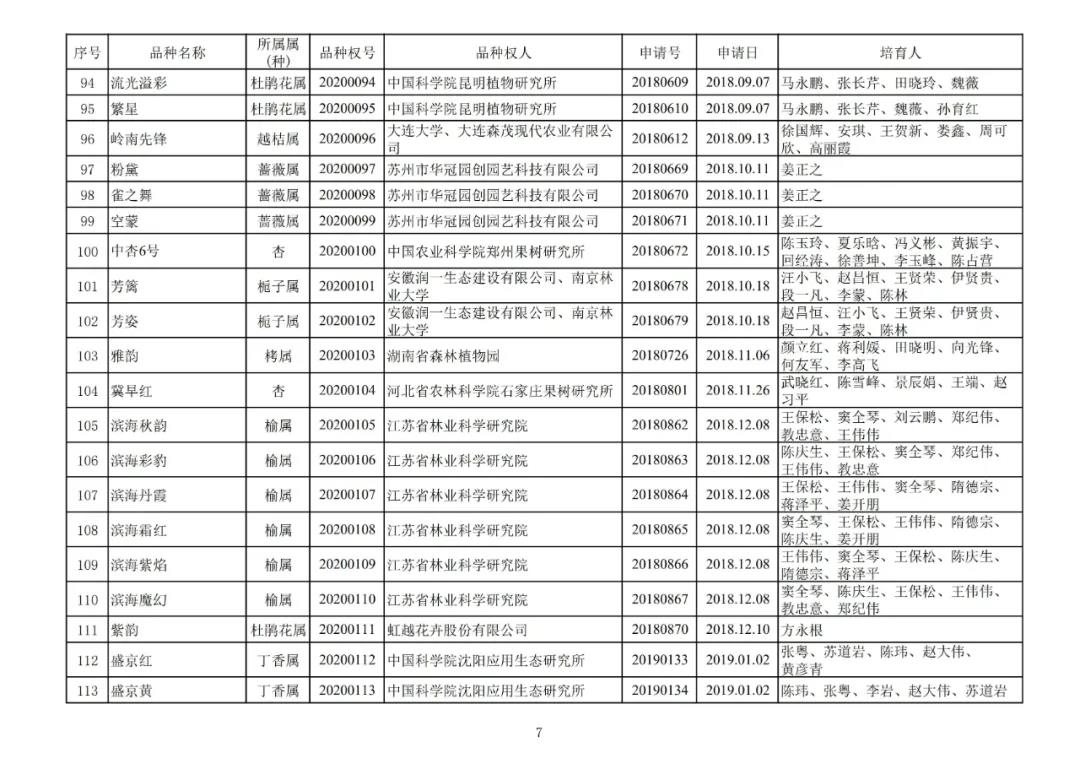 国家林业和草原局2020年第一批授予植物新品种权名单公示啦!