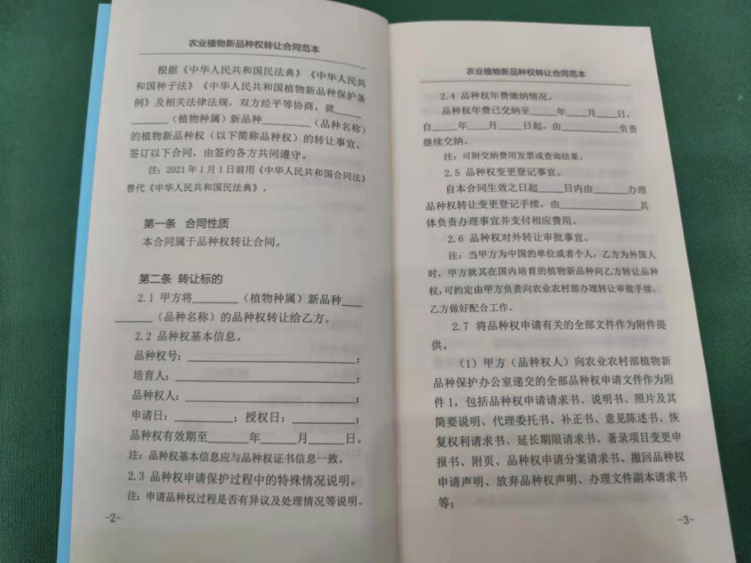 农业植物新品种权转让合同范本正式发布