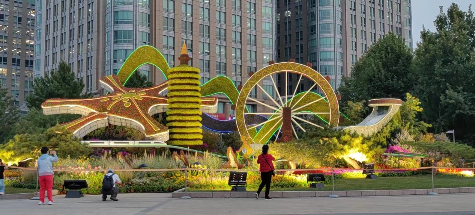 新品种‘蒙林兰柏’‘冰川红叶’首次亮相国庆花坛,喜迎二十大。