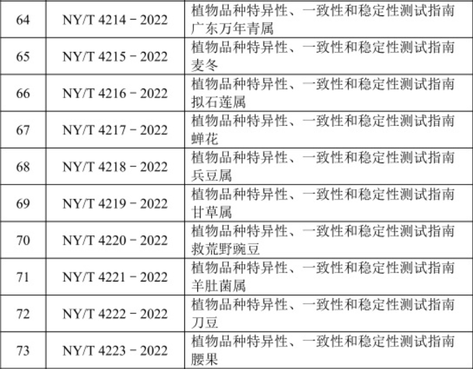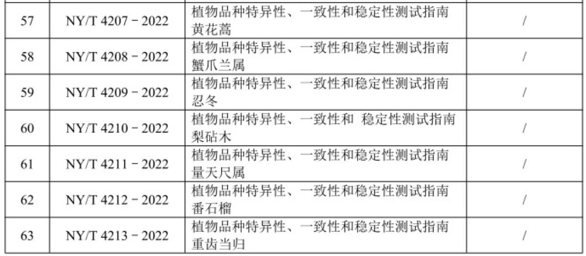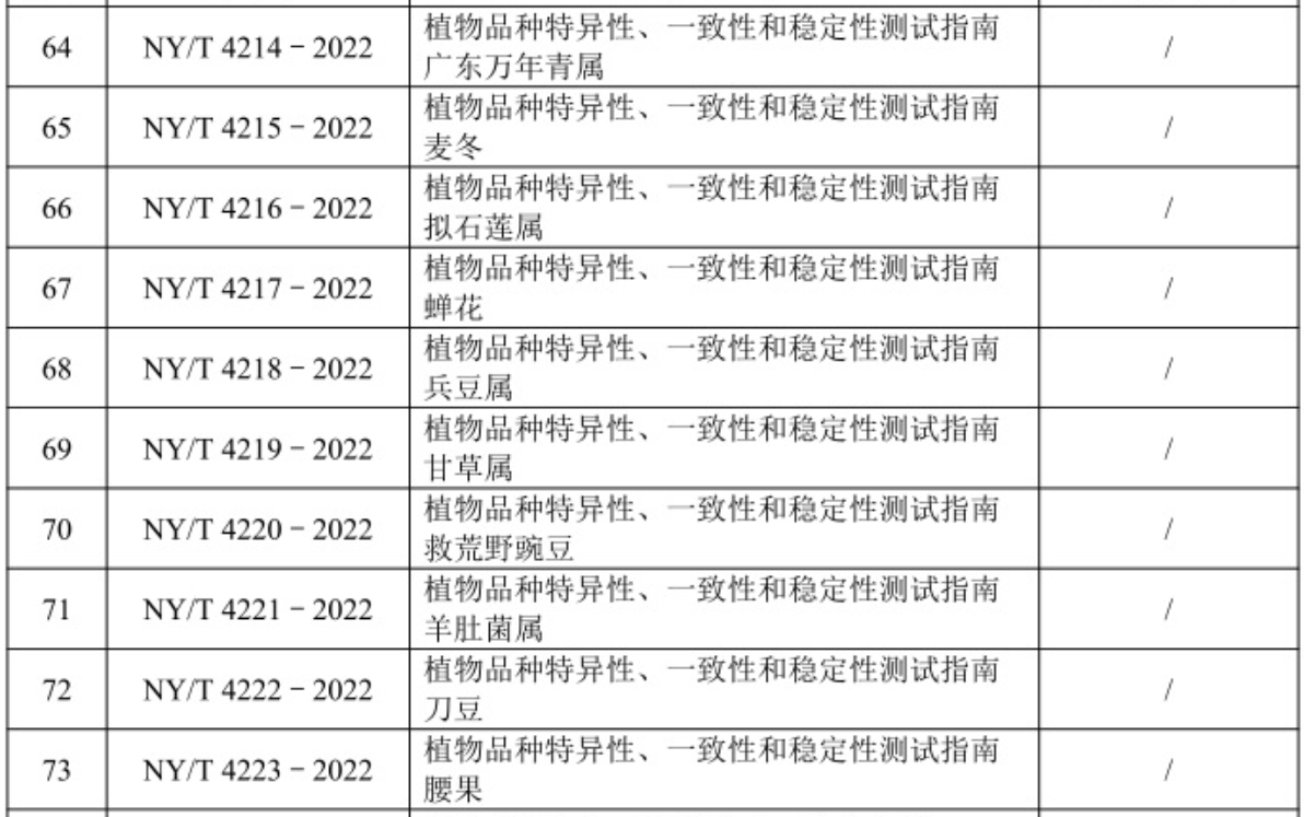 近日,农业农村部发布公告, 160 项标准业经专家审定通过,现批准发布为中华人民共和国农业行业标准,自 2023 年 3 月 1 日起实施。其中包括17项DUS测试指南。