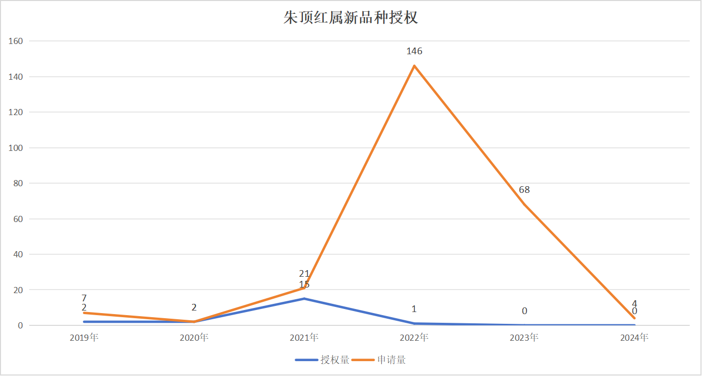 这表明新品种的认定标准较为严格,要求品种在特异性、一致性和稳定性等方面达到较高的水准。从这一趋势也能看出,各方对朱顶红品种保护的重视程度在不断提高。