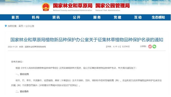 重要通知!林草植物品种保护名录开始征集啦,快来行动吧!