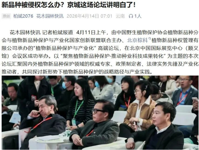 报道标题: 《如何让品种生金,答案就在植物新品种保护与产业化论坛 | 2026 中国国际花展》