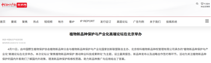 报道标题:《植物新品种保护与产业化高端论坛在北京举办》