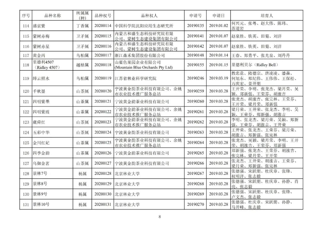 国家林业和草原局2020年第一批授予植物新品种权名单公示啦!