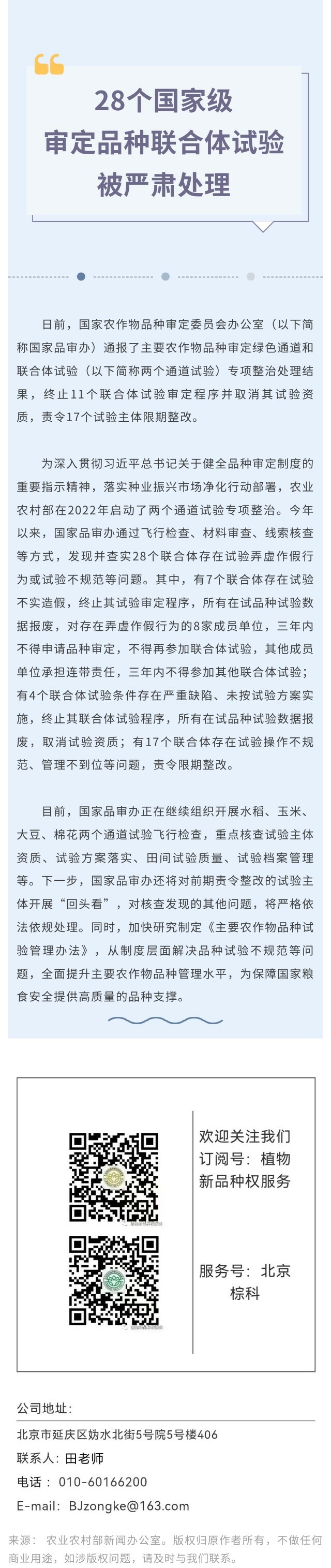 28个国家级审定品种联合体试验被严肃处理