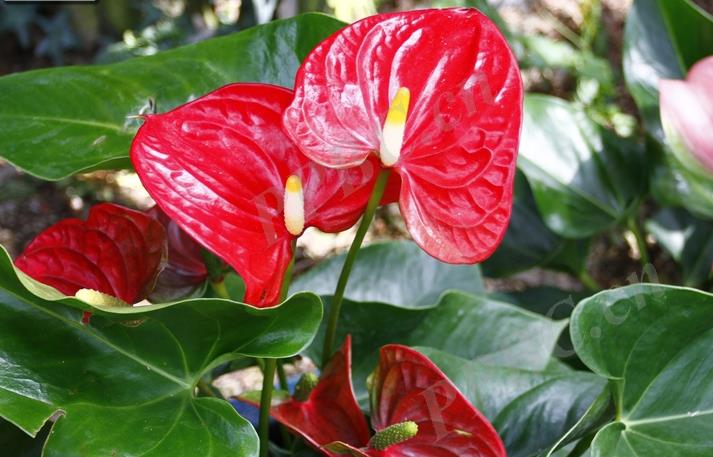 花烛( Anthurium ),凭借其革质心形叶片与蜡质佛焰苞的独特形态,被誉为"植物界的红宝石"。作为天南星科最具经济价值的属种,其肉穗花序与佛焰苞形成的立体几何结构,展现出热带植物特有的进化智慧。
