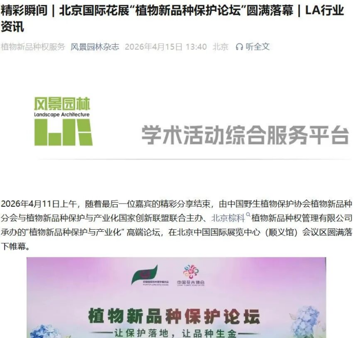 报道标题: 《精彩瞬间| 北京国际花展 “ 植物新品种保护论坛 ” 圆满落幕 |LA 行业资讯》