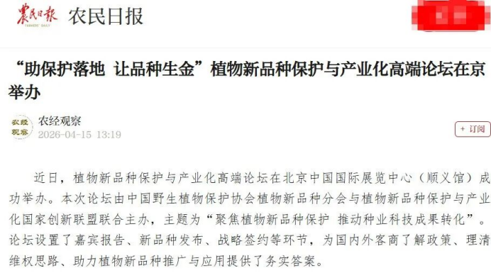 报道标题: 《如何让品种生金,答案就在植物新品种保护与产业化论坛 | 2026 中国国际花展》