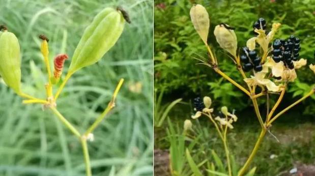 射干果实在成熟后会裸露出黑色的种子,形同浆果黑莓,因此射干又有一个英文名为黑莓百合(blackberry lily)。