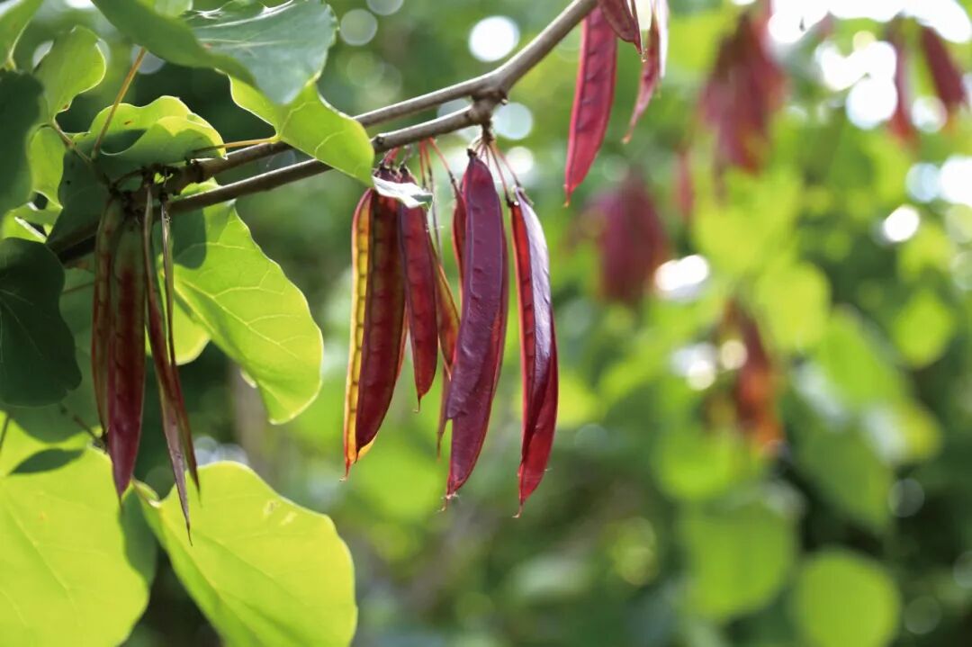 ‘四季春1号’紫荆树巧妙地将传统紫荆的花色与普通巨紫荆的高度相结合,形成了花色艳丽、树体高大、抗逆性强的紫荆大树,树高可达20米-30米,春花玫红、夏叶碧绿、秋果紫褐、冬干银灰,可谓花叶果俱美、四季皆有景。