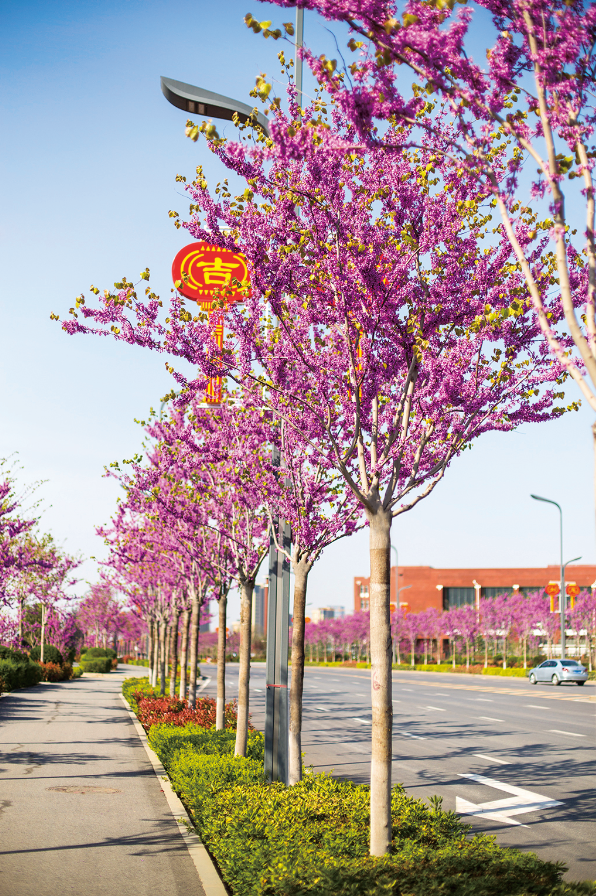 ‘四季春1号’紫荆树为豆科紫荆属观花大乔木,是从湖北紫荆(别名巨紫荆)中选育出的优良品种,是我国紫荆属第一个获得授权的林木新品种,曾获现代园林最具价值新品种、全国十佳耐盐碱苗木金奖等荣誉。